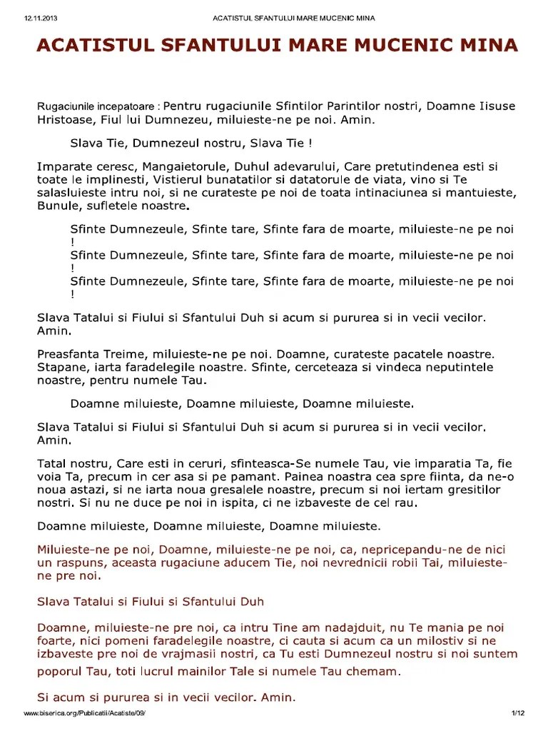 Rugaciune ortodoxa acatistul sfantului mare mucenic mina mina mare. Acatistul sfantului mare mucenic mina. Urmează acatistul sfântului mucenic mina, descoperitorul furtului şi al pagube lor din casă, acatistul sfântului duh, dătă tor de înţelepciune, luminare de minte şi de reuşită la examene, care pentru prima dată a fost tradus din limba rusă în limba română, (în anul 1997). Urmează acatistul sfântului mucenic mina, descoperitorul furtului şi al pagube lor din casă, acatistul sfântului duh, dătă tor de înţelepciune, luminare de minte şi de reuşită la examene, care pentru prima dată a fost tradus din limba rusă în limba română, (în anul 1997).