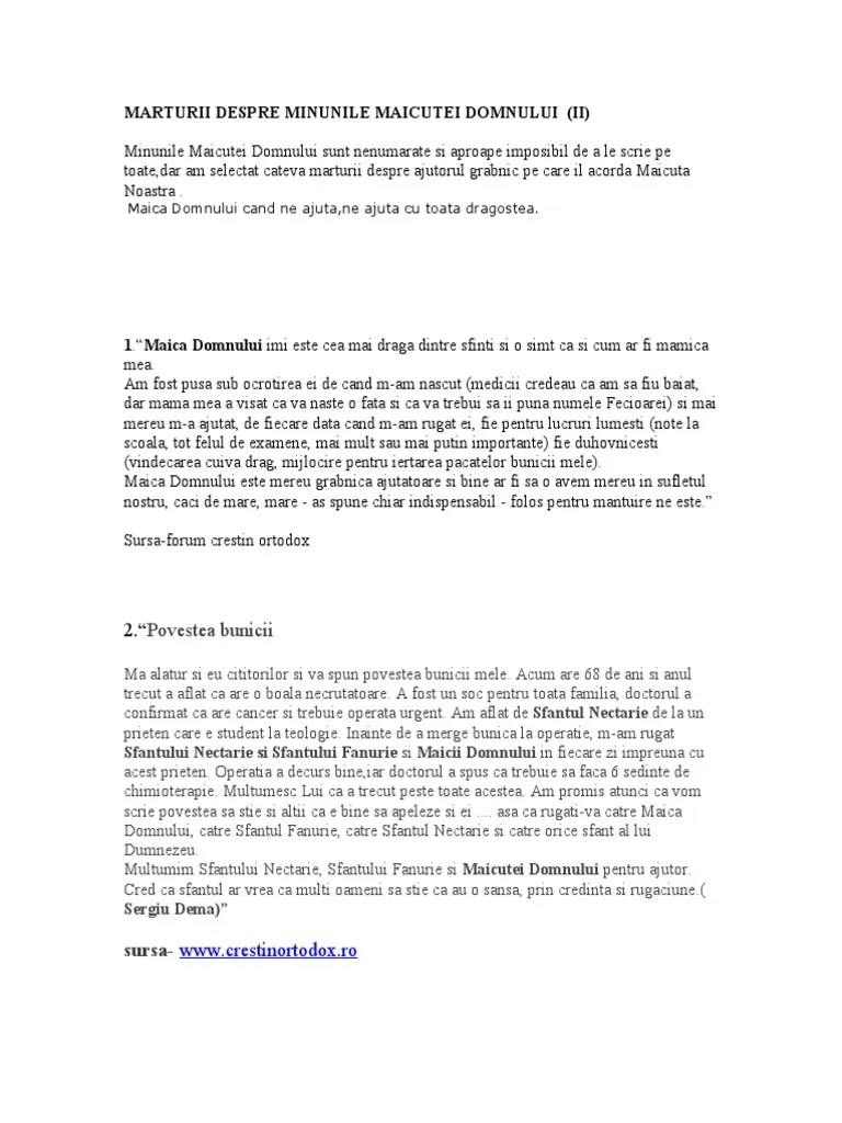 Majoritatea elenilor de ani de zile trăiesc fie departe de dumnezeu, fie … Apr 07, 2017 · minunile maicii domnului. Majoritatea elenilor de ani de zile trăiesc fie departe de dumnezeu, fie … Minunile maicii domnului povestea omului care se ruga maicii domnului in fiecare zi. Jun 03, 2012 · (din paraclisul maicii domnului) bolile cele grele le tamaduiesti si daruiesti ajutor cald celor ce cer de la tine, nascatoare de dumnezeu, curata indrumatoare; Pana pe 15 august, vor aparea si altii. Mai de mult, fiica mea spus ca a avut un vis, dar ca sa nu va plictisesc cu detaliiele o.